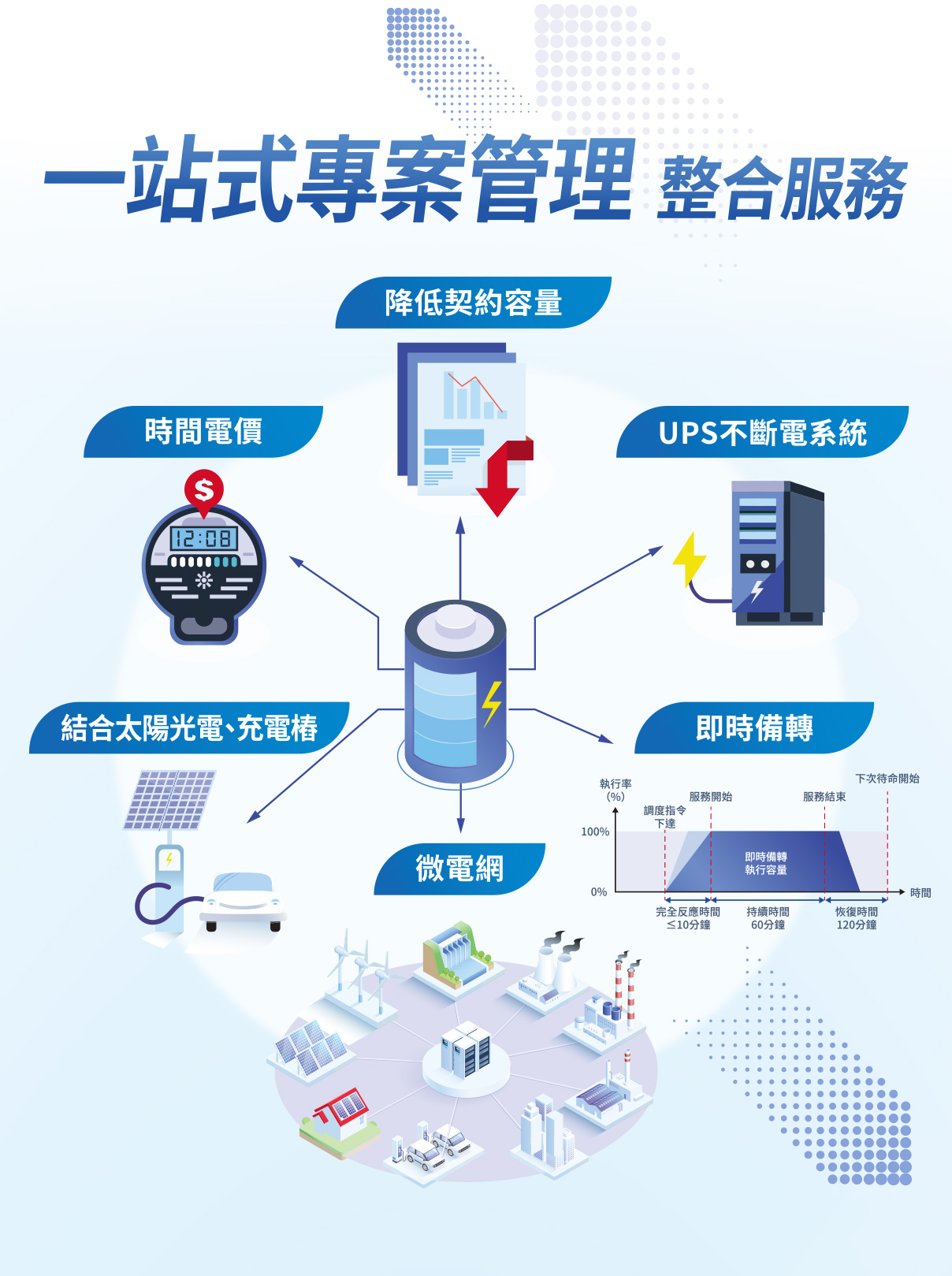 為協助企業面對ESG課題,中華電信推出「表後儲能解決方案」,提供用電評估、系統規劃、建置與維運服務,使企業夥伴能應對電費調漲、停電或綠電存儲等挑戰,全面提升能源管理效能,強化企業韌性與競爭力。